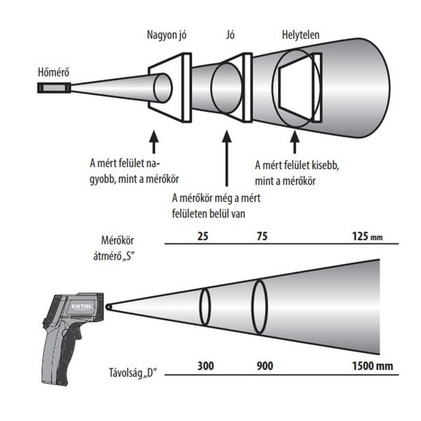 Optimális mérési távolság: 30-90 cm között