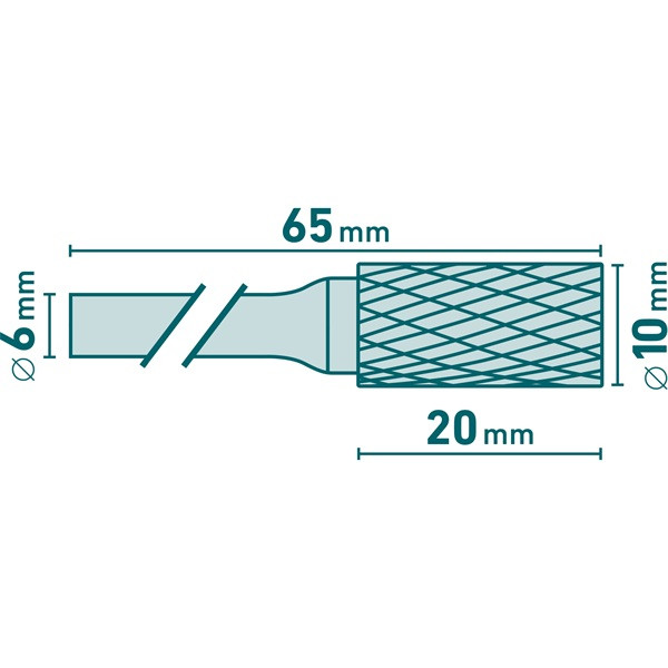 keményfém turbómaró (rotormaró), hengeres, átmérő 10×20mm/szár 6mm, keresztfogazás