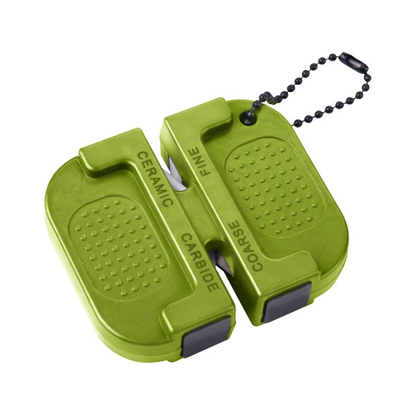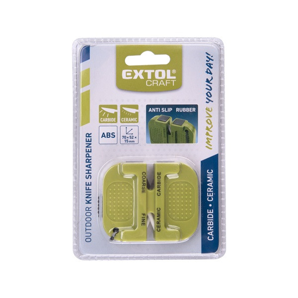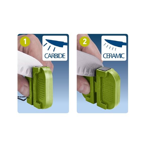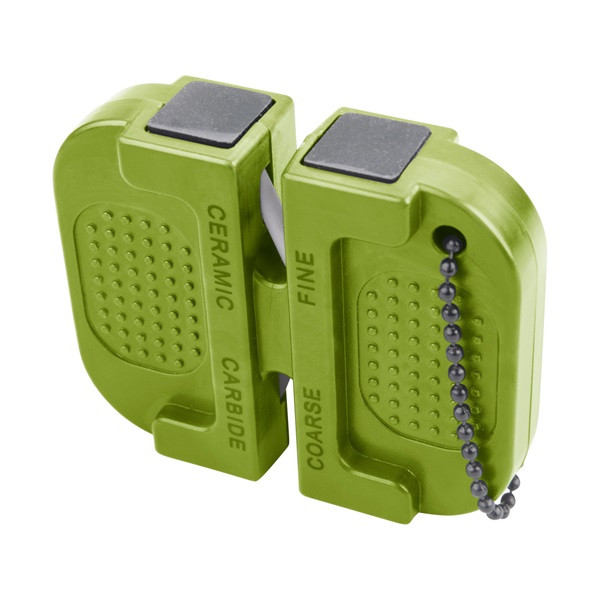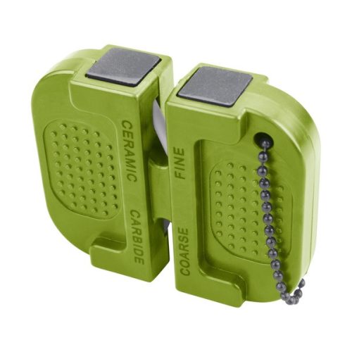 méretek: 70×52×15mm, kültéri használatra is, ABS ház csúszásgátló gumitalppal, keményfém (carbide) betét durva élezéshez és kerámia betét finom élezéshez, mindenféle sík (nem fogazott) acél pengéhez..