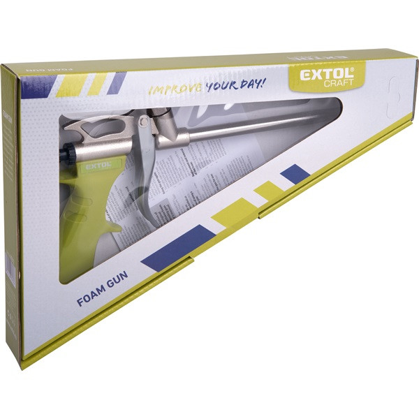 A purhab pisztoly cserélhető műanyag adagolócsövének segítségével a hab pontosan a kívánt helyre jut ki. A krómozással történő felületkezelés növeli a korrózióval szembeni ellenálló képességet. Az anyaggal való maximális takarékoskodás érdekében a kinyomó pisztoly szabályozócsavarja a habáramot a szükséges szélességűre állítja.