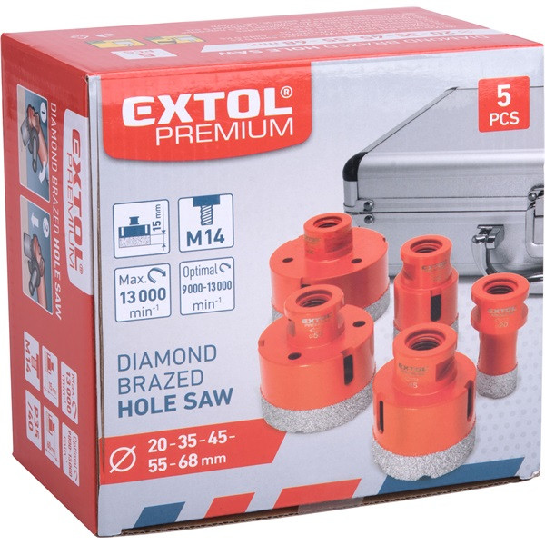 körkivágó csempére klt. 5 db, gyémánt vágóél; 20-68mm × M14, sarokcsiszolóba fogható