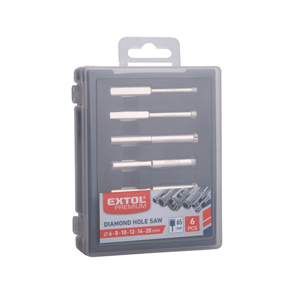körkivágó klt. 6 db, üvegre, kerámiára és csempére, gyémánt vágóél; 6-20 mm, fúrógépbe fogható