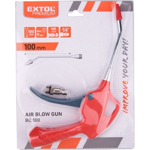 lefúvató pisztoly, 1/4" tömlőcsatlakozó, 10 cm hosszú merev csőr, max. 9 Bar