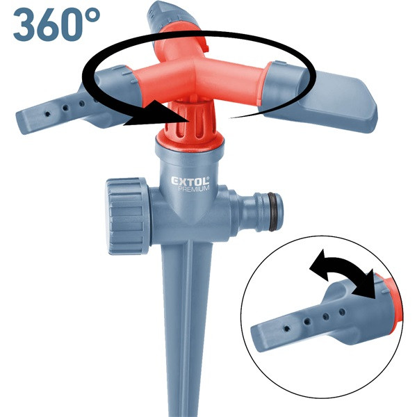 locsoló, leszúrható háromágú forgó, műanyag; kuplung csatlakozóval