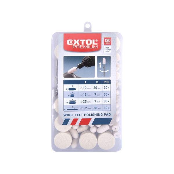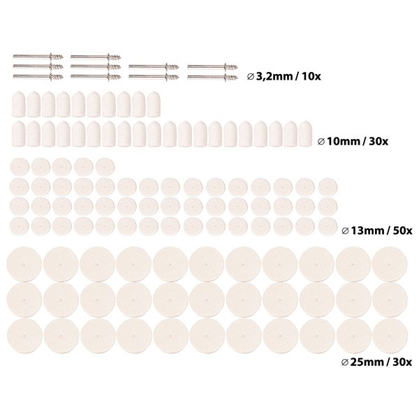 mini polírozó klt. 3,2 mm befogás, 120 db, 3 féle fejforma, gyapjú filc