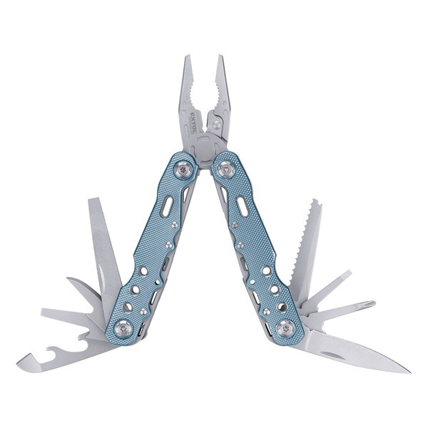 multifunkciós rozsdamentes szerszám, kombinált fogóval+ késpengével, 3Cr13, 11 funk teljes/összecsukott hossz.:165/105mm