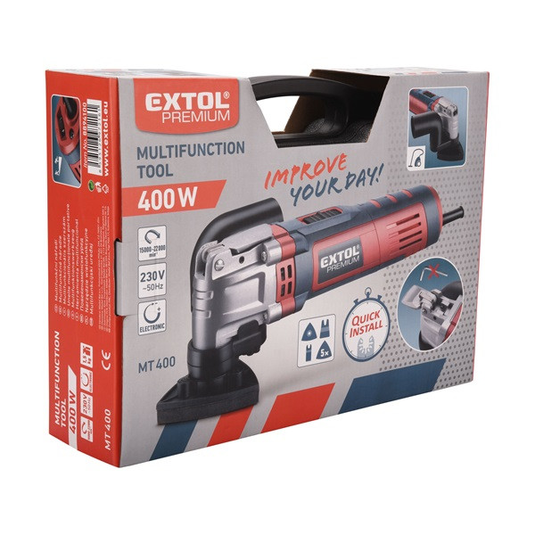 multifunkciós szerszámgép, 400W; szabályozható rezgésszám: 15.000-22.000/perc, 5 db cserélhető fej, 1,5 kg