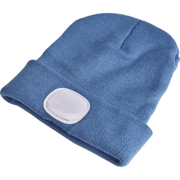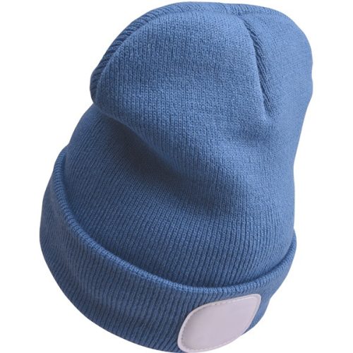 sapka, kék, kötött, kivehető LED homloklámpával, 4×45 Lumen; USB tölthető Li-ion akku, 3 funkció (100%-75%-50% fényerő)