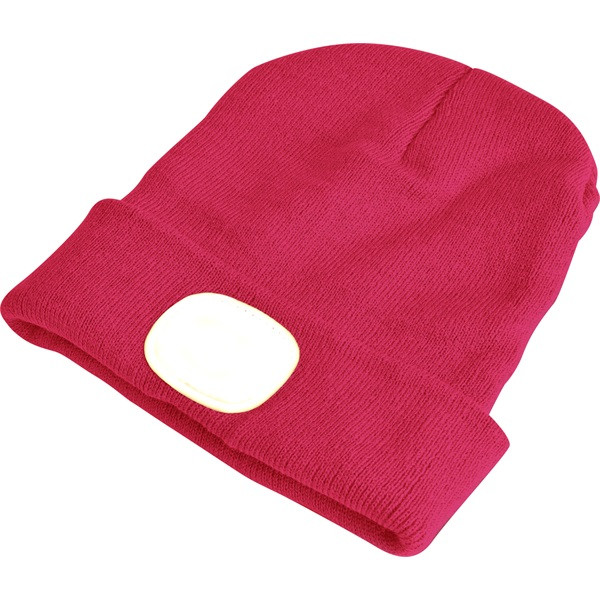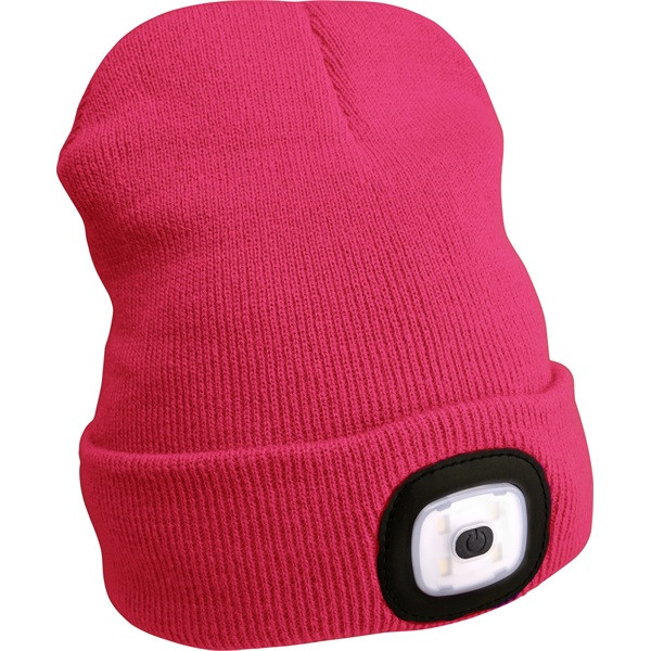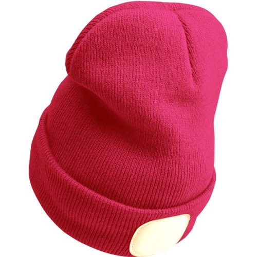 sapka, pink, kötött, kivehető LED homloklámpával, 4×45 Lumen; USB tölthető Li-ion akku, 3 funkció (100%-75%-50% fényerő)