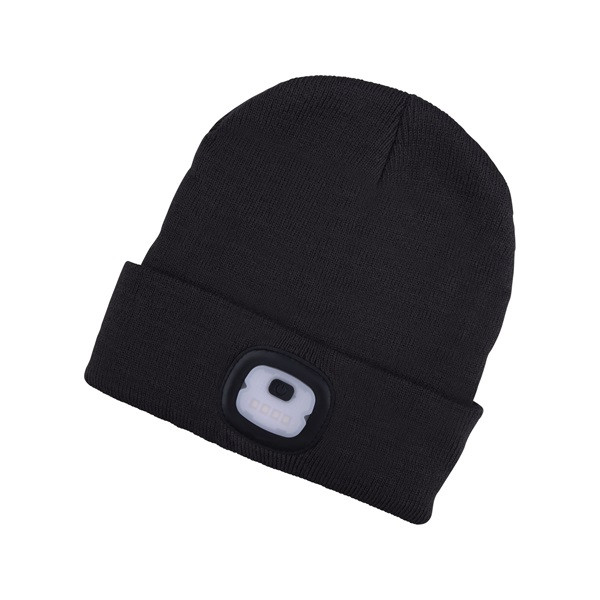 sapka, sötétszürke, kötött, kivehető LED homloklámpával, 4×25 Lumen; USB tölthető Li-ion akku, 3funkció (100%-75%-50%)