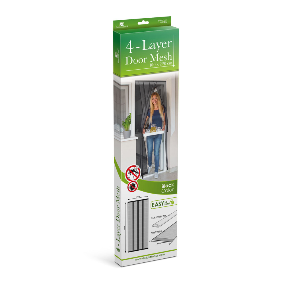 Tartsa távol hatékonyan a rovarokat otthonától. Ez a szalagokból álló szúnyogháló garantáltan kinttartja a kellemetlen rovarokat. A legtöbb ajtóval kompatibilis, öntapadós sínjének köszönhetően könnyen és gyorsan fel- és leszerelhető. Amennyiben az Ön ajtajának magassága kevesebb mint 220 cm, úgy a szúnyogháló felső része vágható. Az alsó részen található súly felelős a szalagok függőleges feszítéséért.