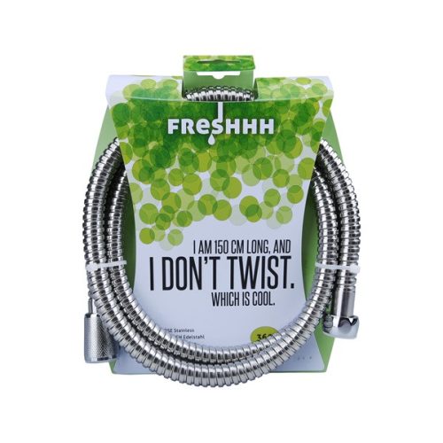 zuhanytömlő, rozsdamentes acél; 1,5m, kétszeresen zárt, csavarodás mentes