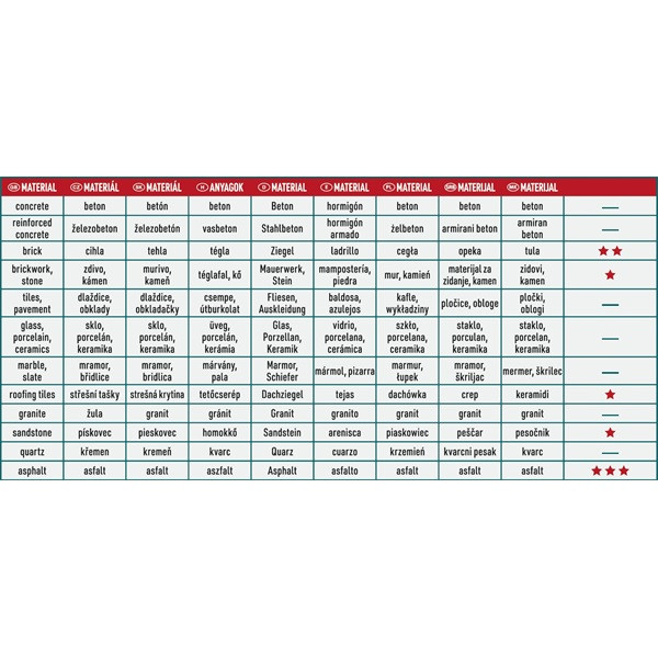 Száraz és vizes vágásra. Lézer hegesztett, magas fokozatú, gyémánt erő: 35 kg, gyémánt részarány: 25%, vágási hossz: 1800 - 2200 m.
