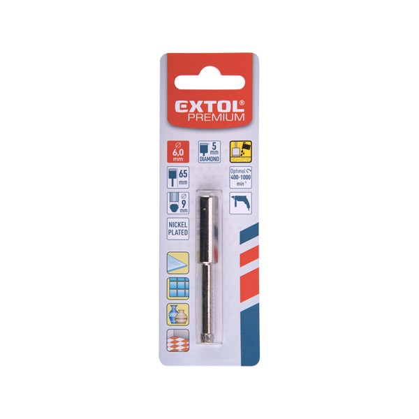 körkivágó üvegre, kerámiára és csempére, gyémánt vágóél; 6×65mm, fúrógépbe fogható