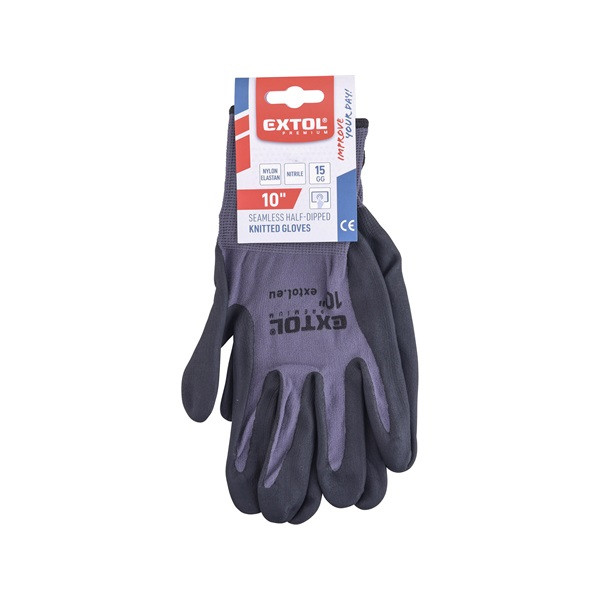 Kötött kesztyű nylon-Spandex, varrat nélküli, méret: 10' nitrilbe mártott teny. és ujjhegy, gumírozott mandzsetta