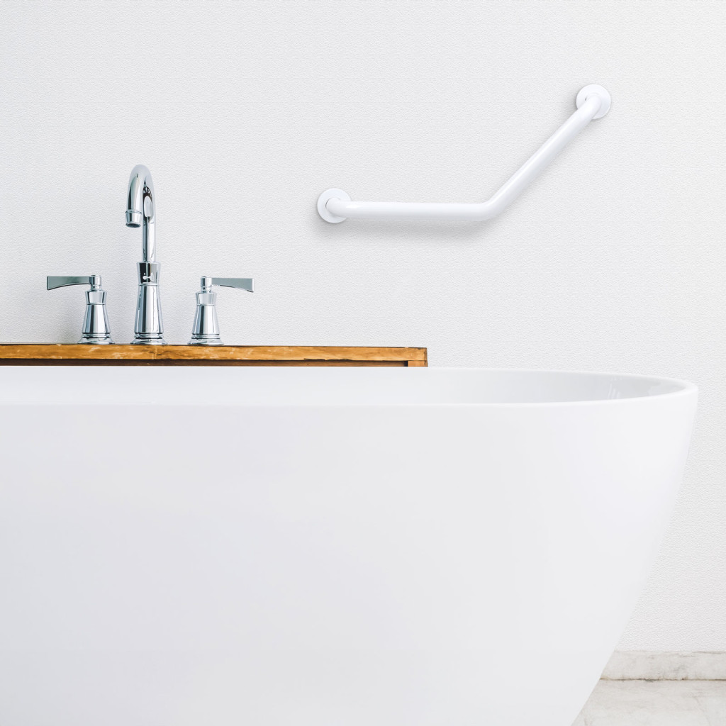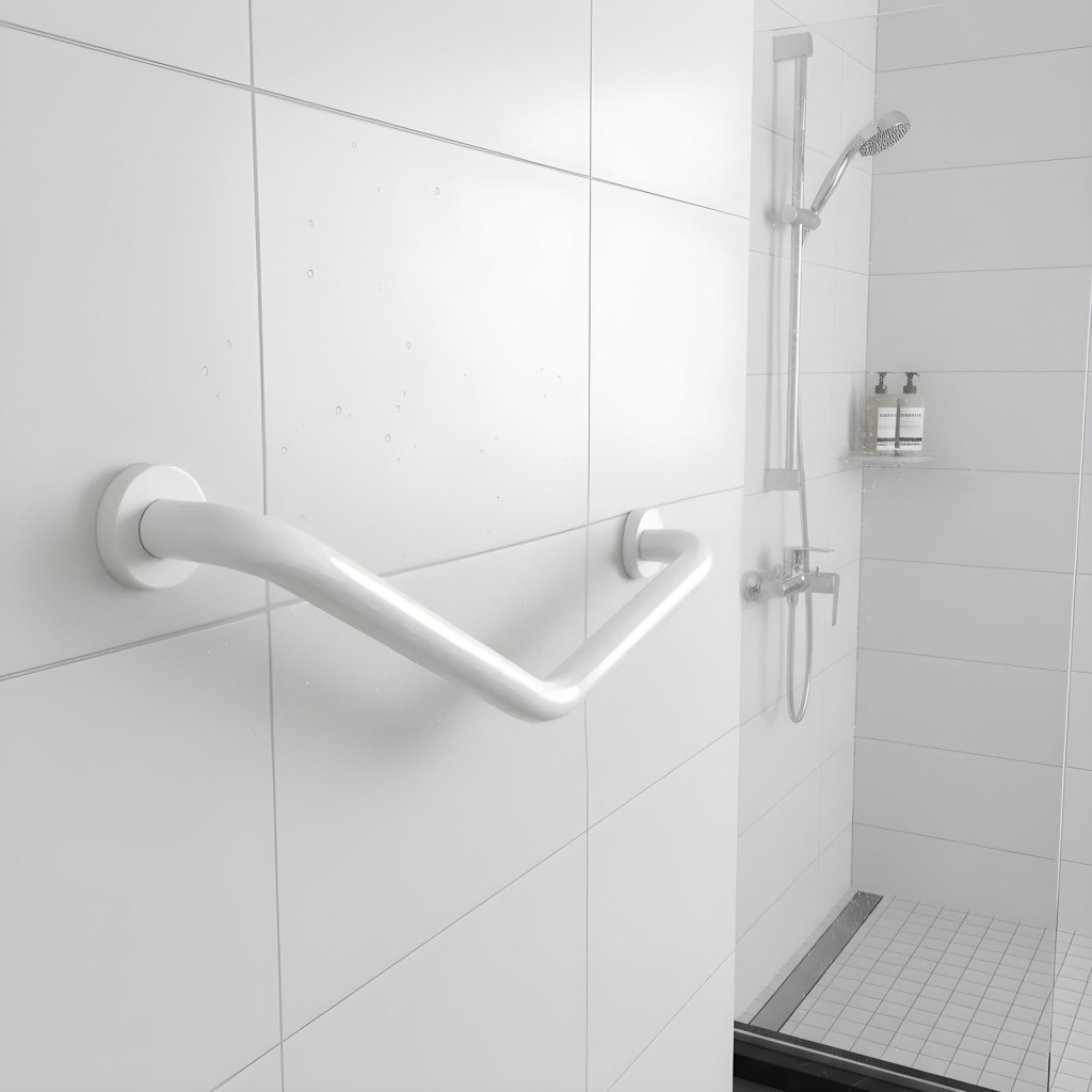 Fürdőszobai kapaszkodó - 45°-ban hajlított - rozsdamentes acél - fehér - 25 + 25 cm