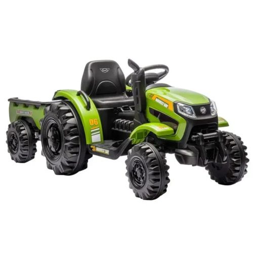 Akkumulátoros gyerektraktor vonószerkezettel, 3-8 éves korig alkalmas, 12 V/10 Ah akkumulátor, 2x35 W motor, max. terhelés 30 kg, sebesség 3-5 km/h, MP3 és USB, hab kerekek.
