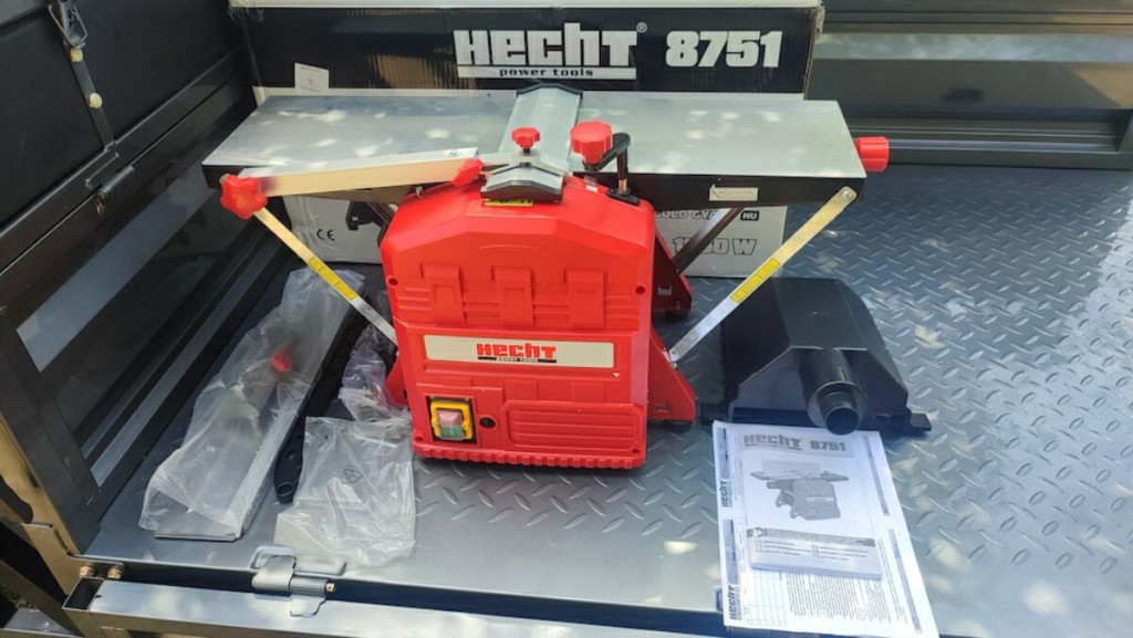 Elektromos gyalu hosszabbítóval. Teljesítményfelvétel 1250 W. Szélesség / gyalulás mélysége 204 / 3 mm. A húzás szélessége / mélysége 204 / 2 mm. Nyújtás magassága 5 - 120 mm. Előtolási sebesség 6 m/perc.