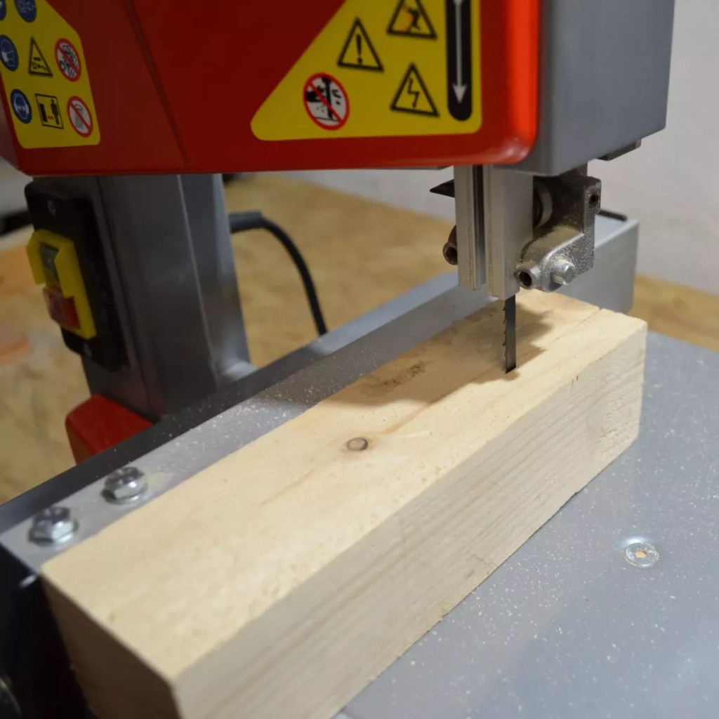 Praktikus asztali szalagfűrész puha és kemény fa, laminált vagy farostlemez vágásához. A precíz vágás érdekében párhuzamos ütközővel van felszerelve gyorskioldó bütykös zárral. Az asztal 0° - 45° tartományban folyamatosan dönthető.