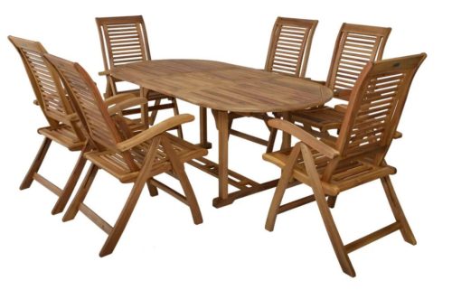 Kemény akácia fából készült, luxus kivitelben, hat székből és egy asztalból álló kerti bútor szett. Használható kerti fedett helyeken és beltérben. Megfelelő teakfa olaj kezeléssel külső helyeken is használható. A fa természetes anyag. Az ábrázolástól eltérő szín a fa természetes tulajdonságaiból adódik.