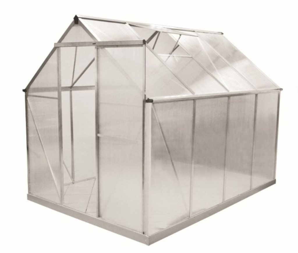 Kiváló hőszigetelő tulajdonságokkal rendelkező, alumíniumprofilokból készült kerti üvegház, teljes körkörös cellás polikarbonát lemezekkel. Tökéletes és egyszerű megoldás mindazok számára, akik nem akarnak nehéz tégla- vagy acél üvegházat építeni nehéz töltettel, de mégis melegkedvelő növényeket, zöldségeket vagy gyümölcsöket szeretnének termeszteni vagy teleltetni. Egy egyszárnyú tolóajtóval és két szellőző, zsanéros ablakkal felszerelt. Az üvegházhoz ingyenes acél talapzat is tartozik. Szilárd és könnyű szerkezet. A váz alumíniumprofilokból készül, amelyek kis súlyúak és hosszú élettartamúak, minimális karbantartást igényelnek. Ráadásul korrózióállók, ami különösen fontos, ha az üvegházban nedves klíma uralkodik. Az egyszerű összeszerelésnek köszönhetően elkerülheti a nehéz építési munkálatokat, az alumíniumszerkezet pedig modern megjelenésű és könnyen tisztítható. Az üvegház így nemcsak hasznos, hanem esztétikus kiegészítője is lesz kertjének. Könnyű összeszerelés. Az üvegházat otthon is össze lehet szerelni építőszerszámok és speciális ismeretek nélkül. Az alumíniumszerkezet hétköznapi szerszámokkal is összeszerelhető és két ember kényelmesen elfér benne. Ezenfelül a töltetek rögzítésére szolgáló horonyrendszer növeli az egész üvegház szilárdságát, és lehetővé teszi a sérült töltetek cseréjét anélkül, hogy a teljes szerkezetet szét kellene szedni. Az üvegház egyéb felszerelései Az ablakokhoz (a válaszfal megerősítése után) önnyíló szerkezet is felszerelhető, amely automatikus szellőzést biztosít, kézi nyitás szükségessége nélkül. A belső falakon tartós alumínium polcok helyezhetők el egyéb berendezések vagy virágtartók számára. Az üvegház oldalai ereszcsatornákkal vannak ellátva, amelyeket külön lehet hozzá megvásárolni. Minőségi töltőanyagok UV szűrővel. Az üvegház töltetei polikarbonátból készülnek, kizárólag a német Bayer cég granulátumából. Ez tehát semmiképpen sem olyan újrahasznosított anyag, amely szennyeződéseket tartalmaz és ezáltal csökkenti a fényáteresztést. A polikarbonátot az EU országaiban való használatra tervezték. A panelek kiválóan áteresztik a napfényt (kb. 80%), és nem terhelik túl a szerkezetet. Kívülről UV-szűrővel rendelkeznek, hogy megvédjék a növényeket a káros napsugárzástól.