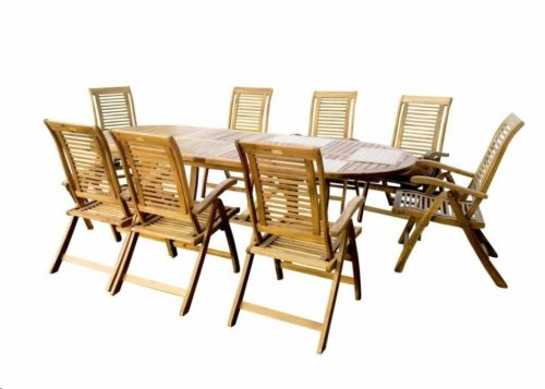 Kemény akácia fából készült, luxus kivitelben, nyolc egymásba pakolható székből és egy összecsukható asztalból álló kerti bútor szett. Használható kerti fedett helyeken és beltérben. A fa természetes anyag. Az ábrázolástól eltérő szín a fa természetes tulajdonságaiból adódik.