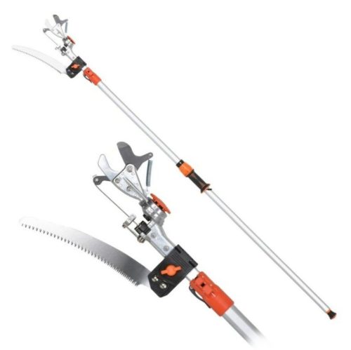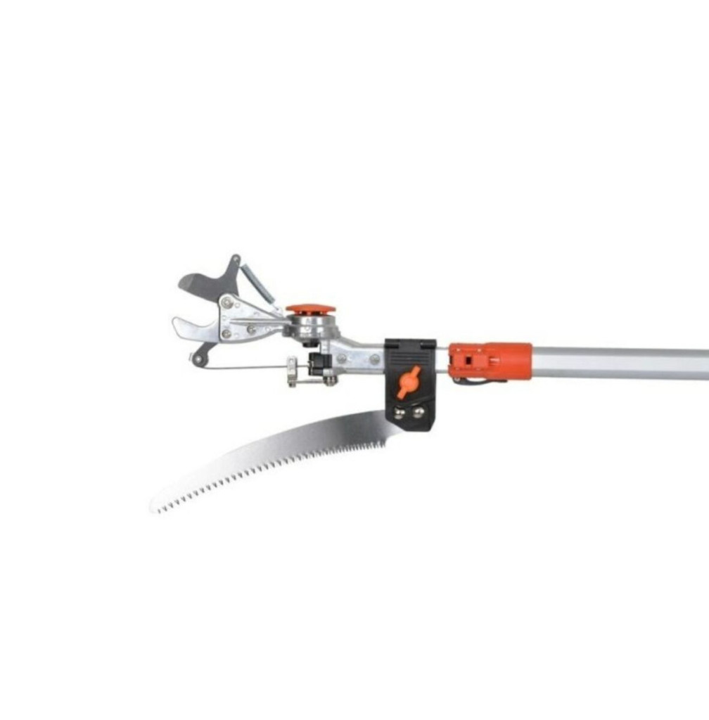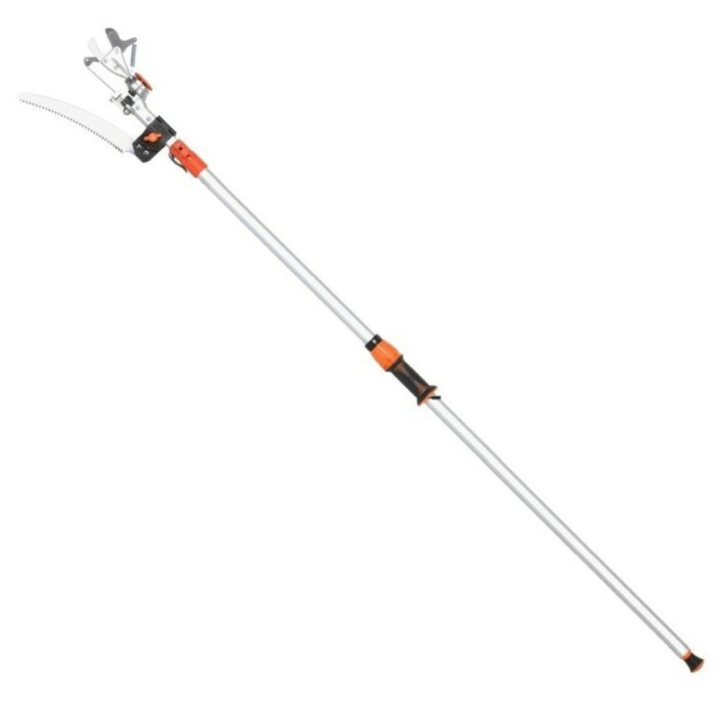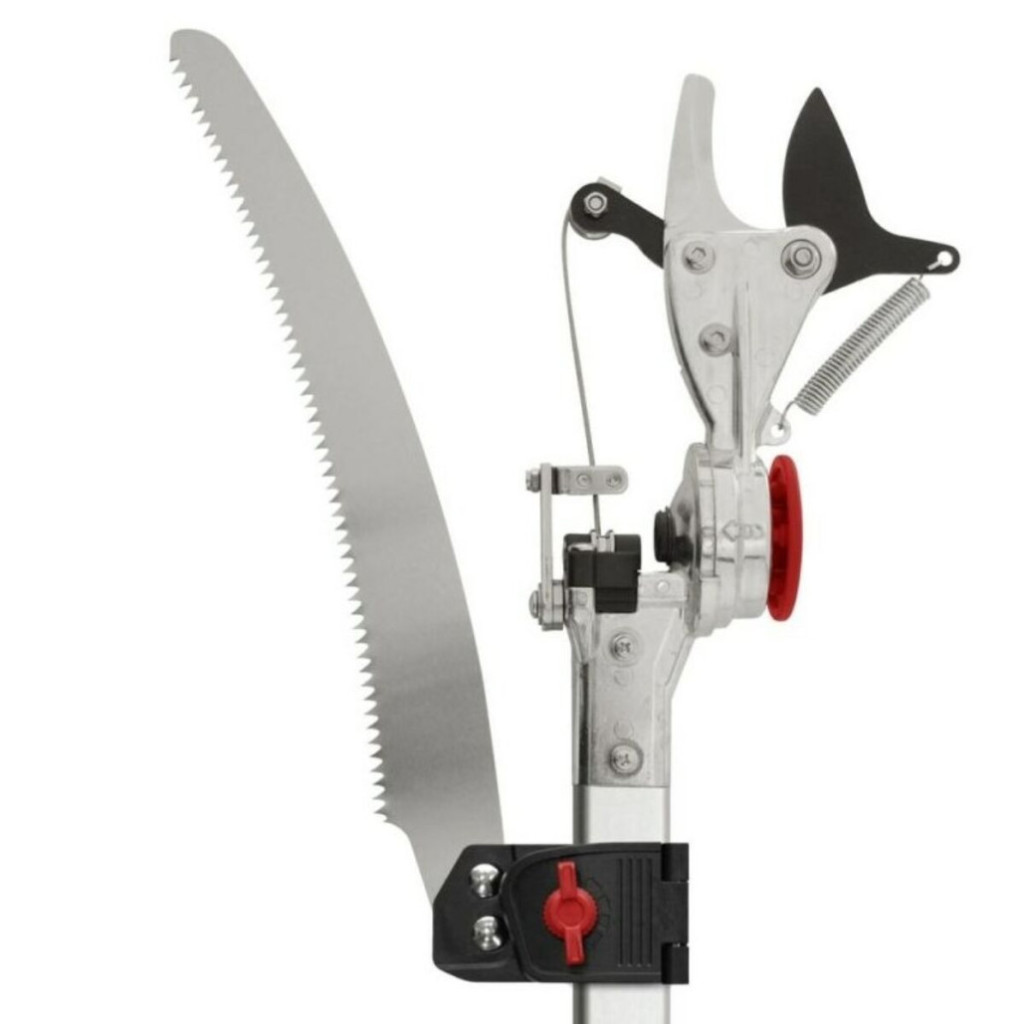 Univerzális kertészeti teleszkópos ágvágó fűrész és olló. A fogantyú könnyű alumíniumötvözetből készült, és csúszásgátló fogantyúkkal van felszerelve. A hossza 200-356 cm között állítható. Az olló a nyélen 180°-ban elforgatható, így a vágáshoz megfelelő pozícióba állítható. Az ollóhoz egy ágfűrészt is mellékelünk, amely a gyorskioldónak köszönhetően bármikor könnyen felhelyezhető vagy levehető a nyélről. A maximális vágási átmérő 30 mm.
