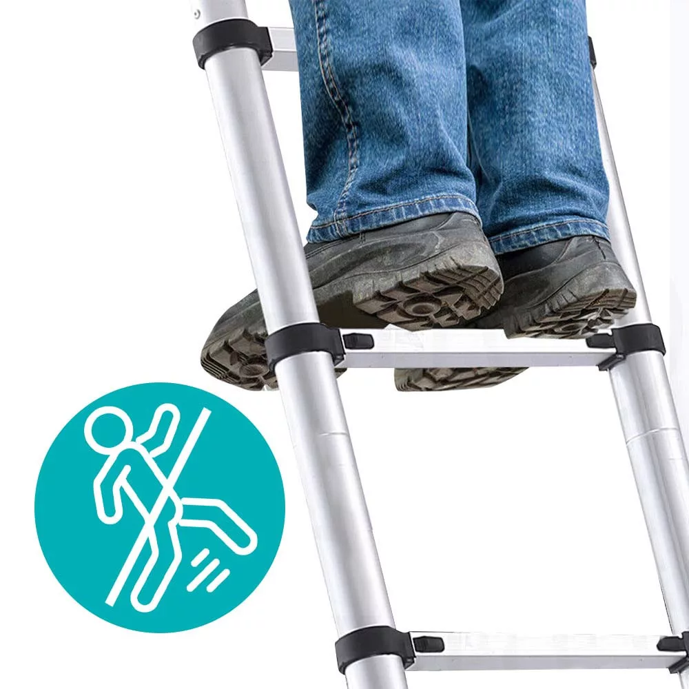 Ez a kihúzható teleszkópos létra ideális megoldás háztartási és szakmai feladatokra is. Kis helyen is elfér, mégis akár 150 kg-ot is elbír, fokozatosan állítható magassággal és csúszásgátlós talppal biztosítva a stabilitást és biztonságot.