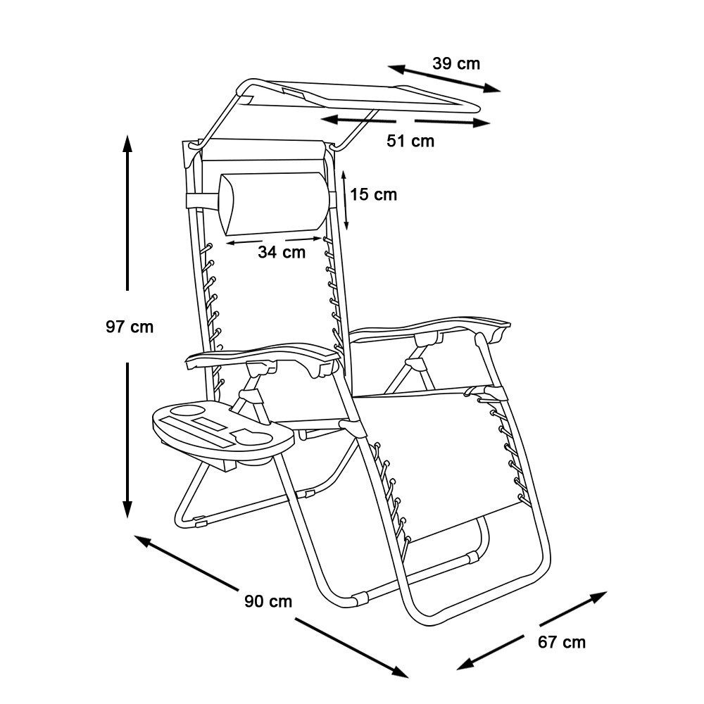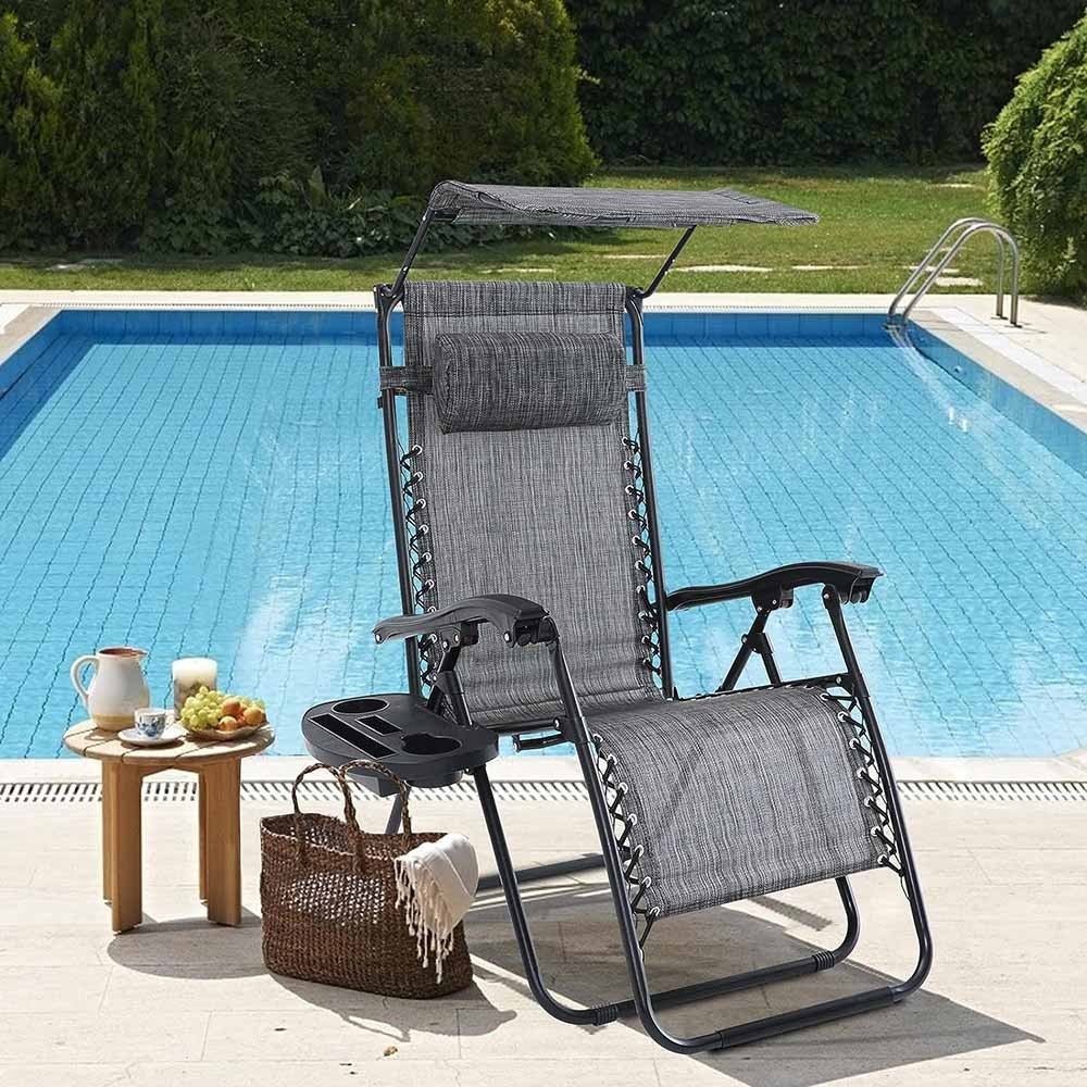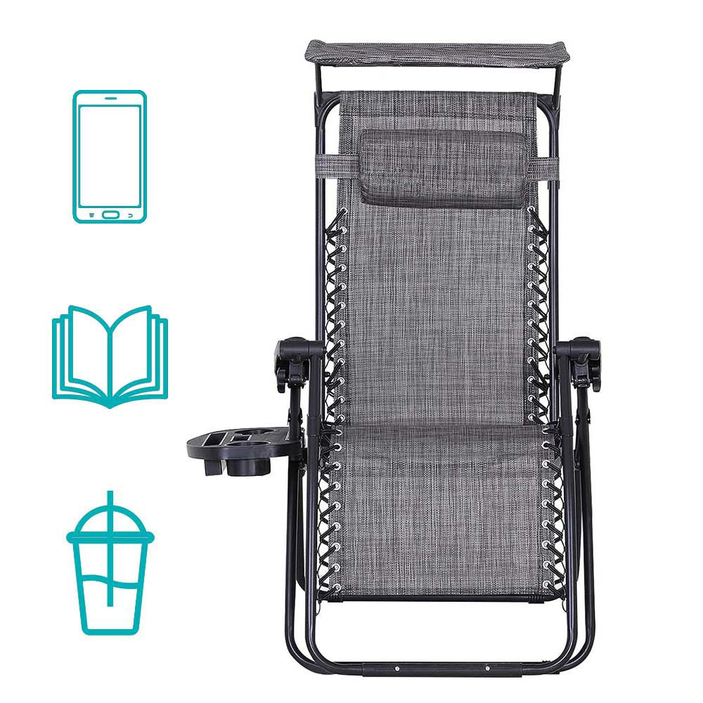 Zéró gravitáció szék napellenzővel és pohártartóval 2 db, több színben-szürke