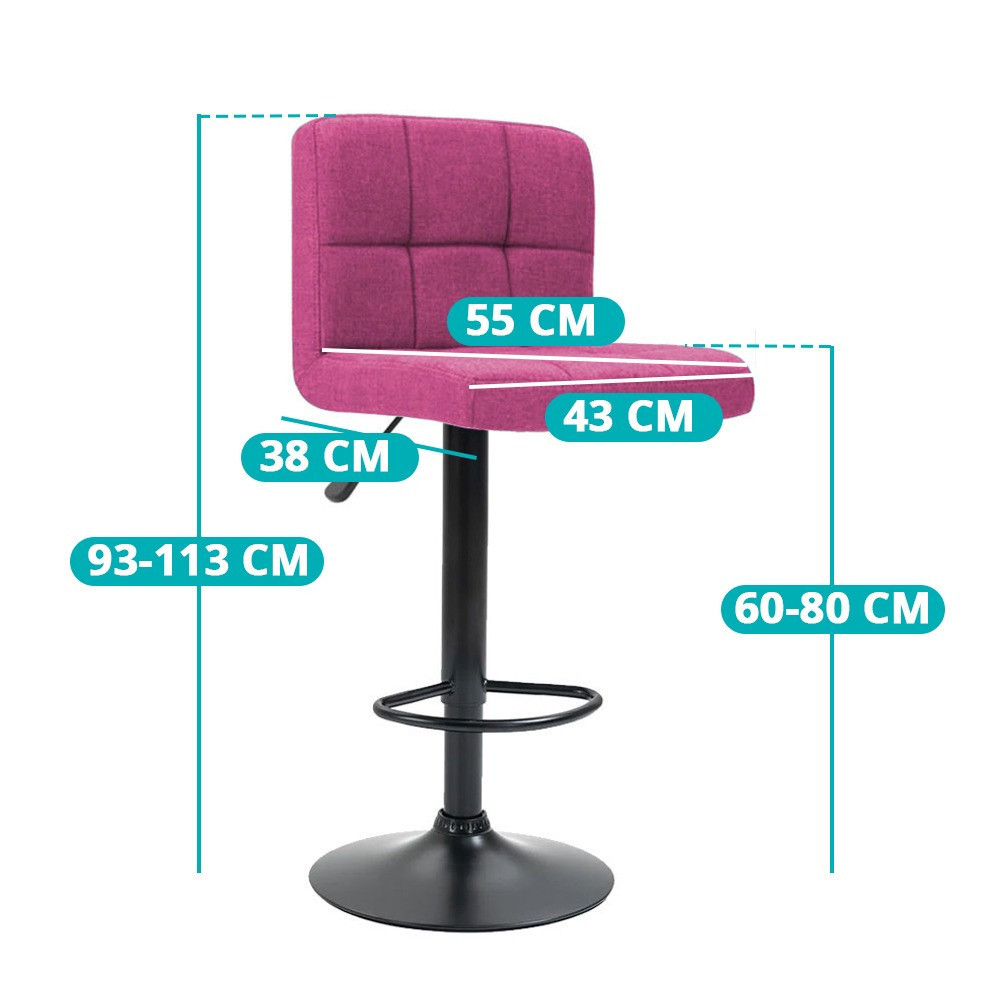 Dobd fel otthonod vagy üzleted eleganciáját ezzel a luxus kialakítású, szövet borítású bárszék szettel! Az állítható magasság (60-80 cm), a párnázott ülőfelület és a stabil szerkezet maximális kényelmet nyújt hosszabb étkezésekhez vagy társas összejövetelekhez. Modern és letisztult formatervezése bármilyen enteriőrbe tökéletesen illeszkedik, míg a könnyen tisztítható anyag gondtalan használatot biztosít.