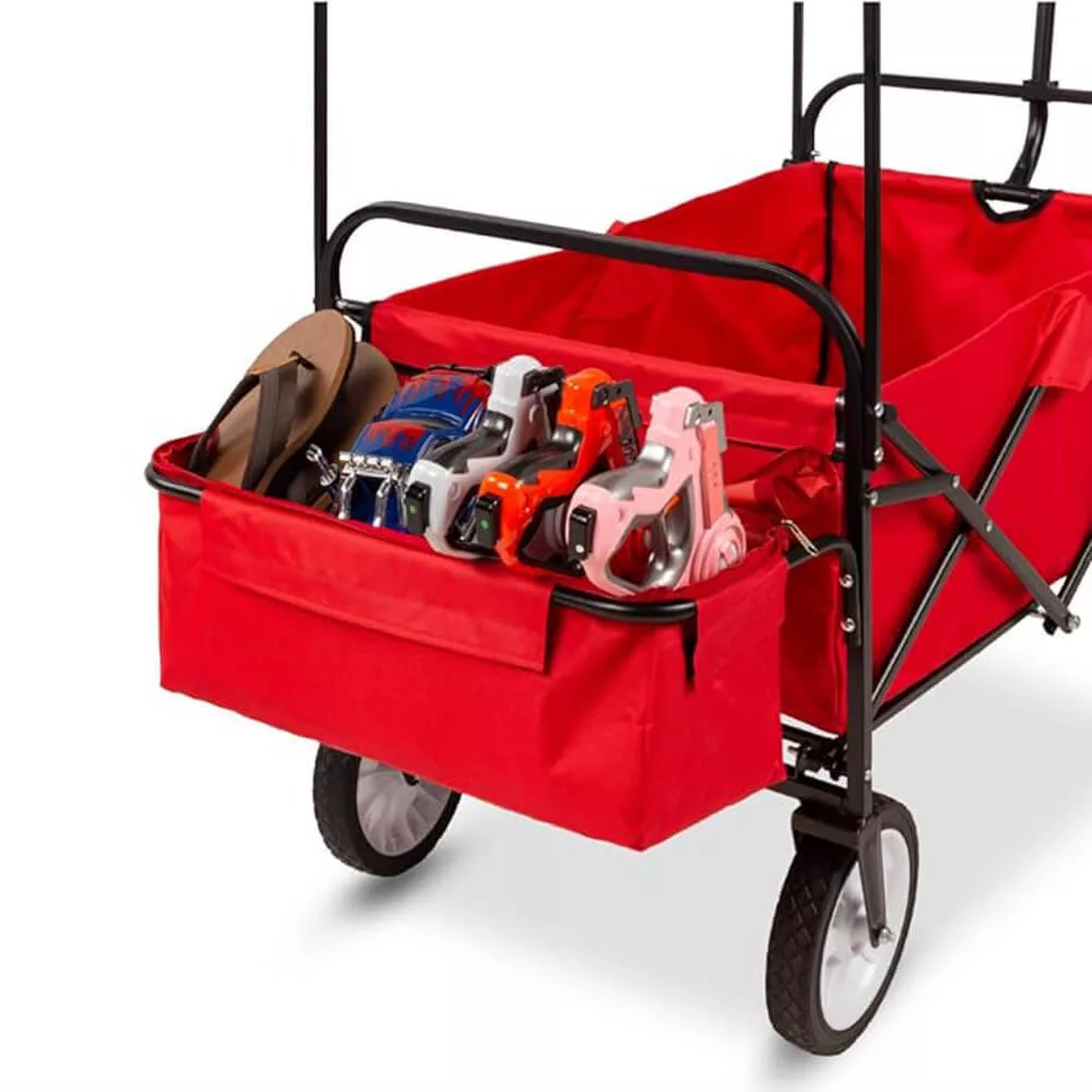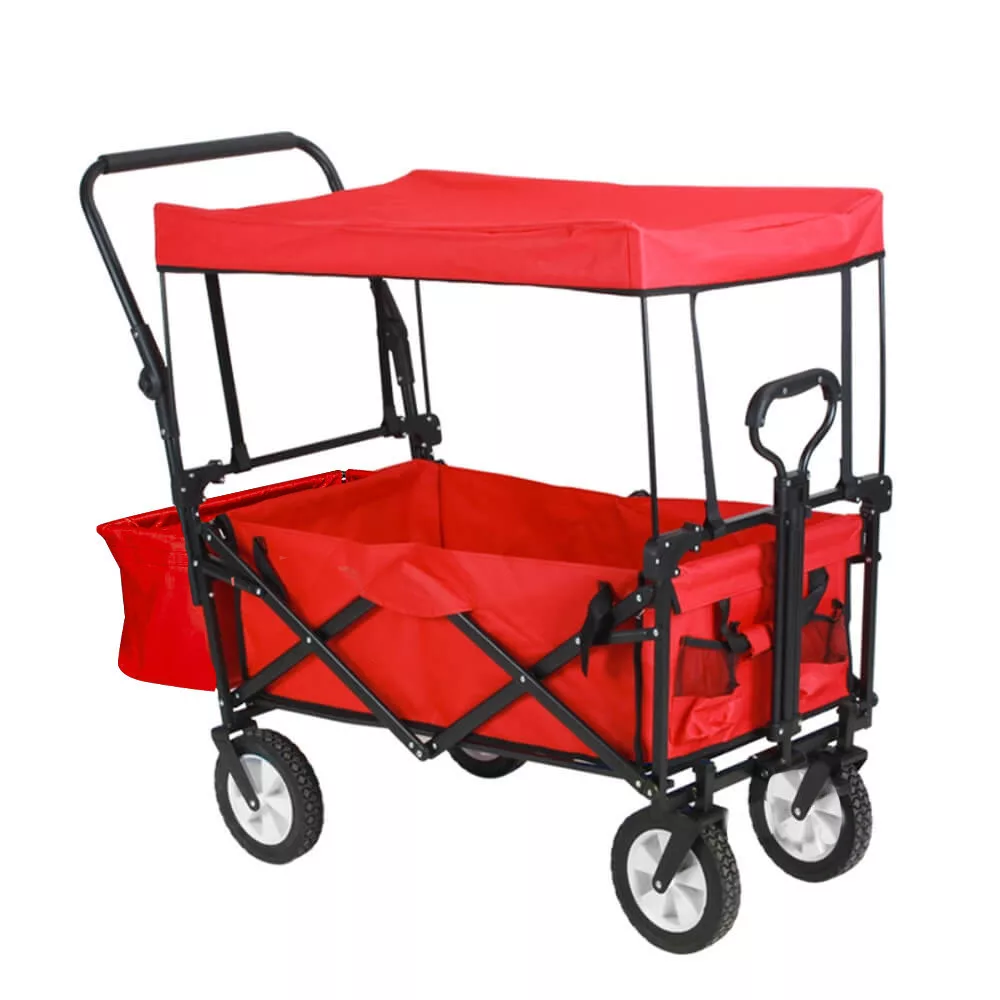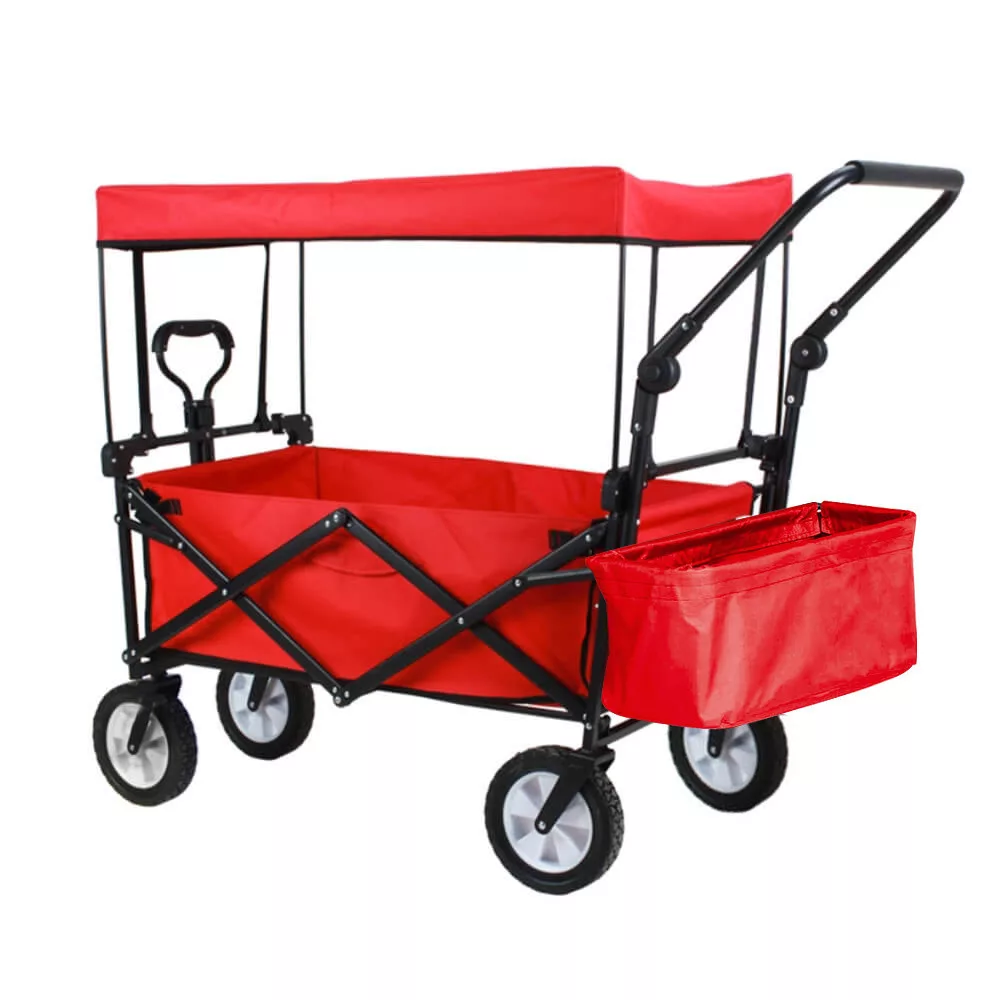 Az összecsukható, tetővel ellátott kézikocsi ideális társ kerti munkákhoz, kirándulásokhoz, strandoláshoz vagy akár horgászathoz. Erős, 100 kg teherbírású kialakításának és kényelmes hordozhatóságának köszönhetően szinte bármilyen feladatra alkalmas. Levehető tetője és tárolózsebei még praktikusabbá teszik, a masszív váz pedig egyszerűen összecsukható, így kis helyen is elfér.