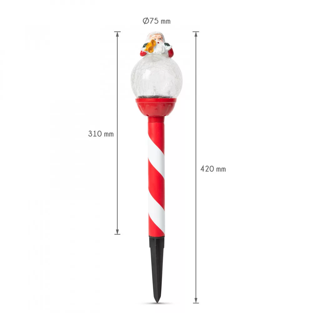 LED-es szolár lámpa - mikulás, üveggömb kristály - 42 x ø7,5 cm