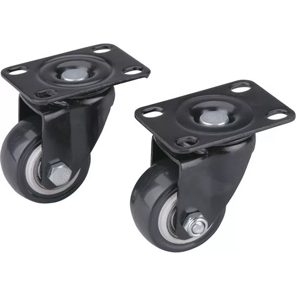 készülékgörgő 2 db, önbeálló, fekete PVC, golyóscsapággyal, 40mm, max. teherbírás: 30 kg/db