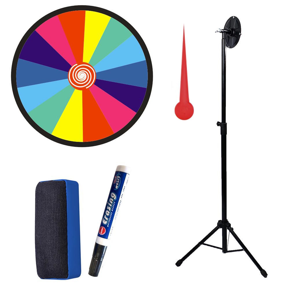 Az írható szerencsekerék lehet egy jópofa otthoni társasjáték eleme, lehet gyerekjáték, vagy egy igazi szórakoztató bulikellék, sőt ajándékba is szuper ötlet! Határt csak a képzelet szabhat. Állítható magasságú állványa megkönnyíti a szállítását, és az elhelyezését. Tökéletes kellék céges rendezvényekre, gyerektáborokba, házibuliba, vagy hétvégi kiruccanásra a barátokkal. A szett tartalmaz 1 db alkoholos filctollat, és 1 db szivacsot is.
