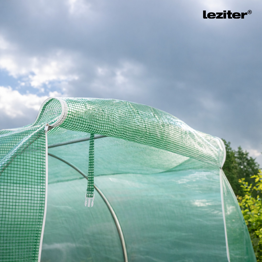 A modern fóliasátor praktikus, felhajtható ajtóval van ellátva, ami egyszerűvé teszi a belépést. A sátor 12 oldalsó szellőzőnyílása hálóval van ellátva, hogy megakadályozza a rovarok bejutását, miközben biztosítja a megfelelő légáramlást. Az ablakok segítik a nedvesség szabályozását, így növelve a terméshozamot.
