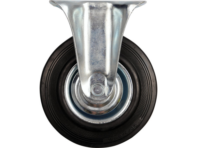 Kerék átmérő 125 mm rögzített szereléssel, csapágyazással, fekete gumi abronccsal, 155 mm magas.