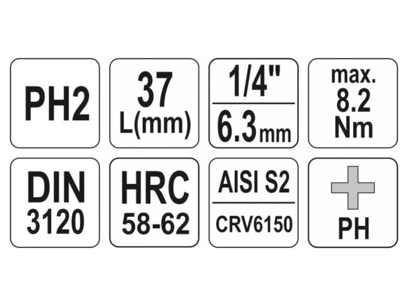 Professzionális mandrél, kupak méret 1/4 ", pH2 mandrél. Króm kupak CRV6150 acélból készült, mandrél (úgynevezett bit, csavarhúzó) Aisi S2 acélból készült és nikkel bevonattal borított. Pótolhatatlan eszköz egy autós vagy mechanikai műhelyben.