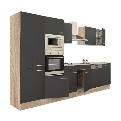 Yorki 340 konyhabútor sonoma tölgy korpusz,selyemfényű antracit fronttal polcos szekrénnyel