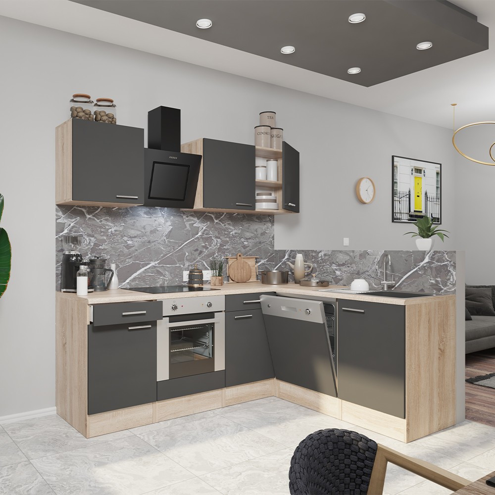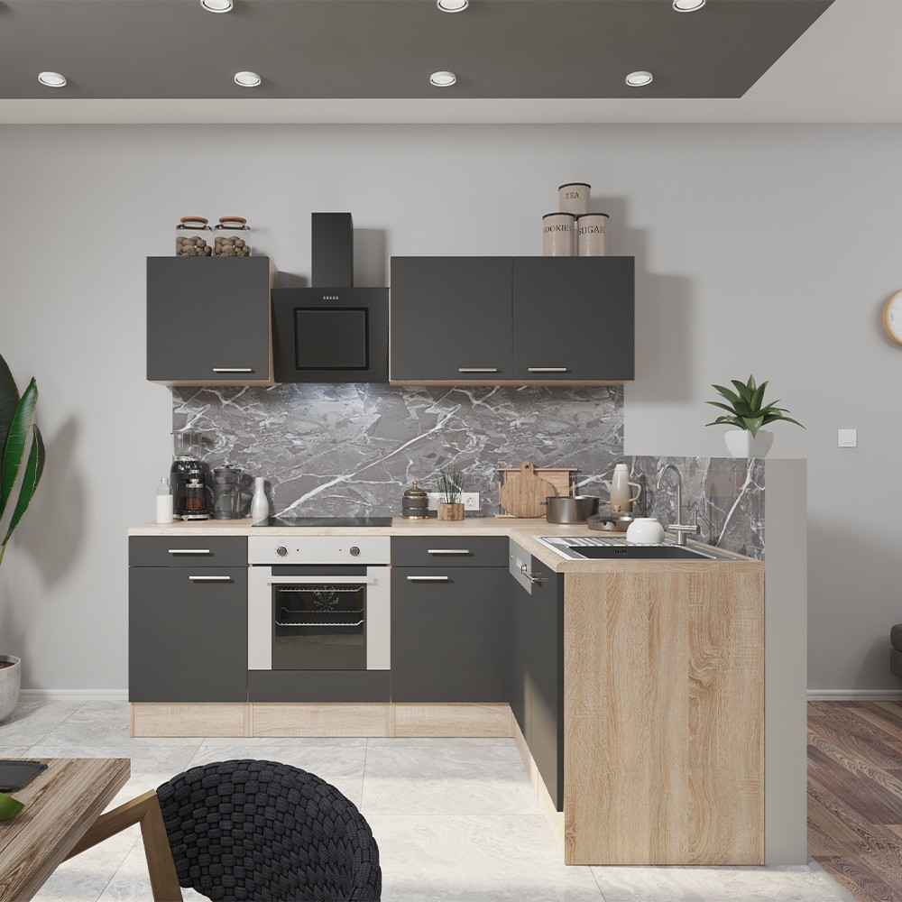 Yorki 220 sarok konyhablokk sonoma tölgy korpusz, selyemfényű antracit fronttal. A tökéletes konyha megteremtője!