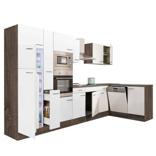 Yorki 370 sarok konyhabútor yorki tölgy korpusz,selyemfényű fehér fronttal