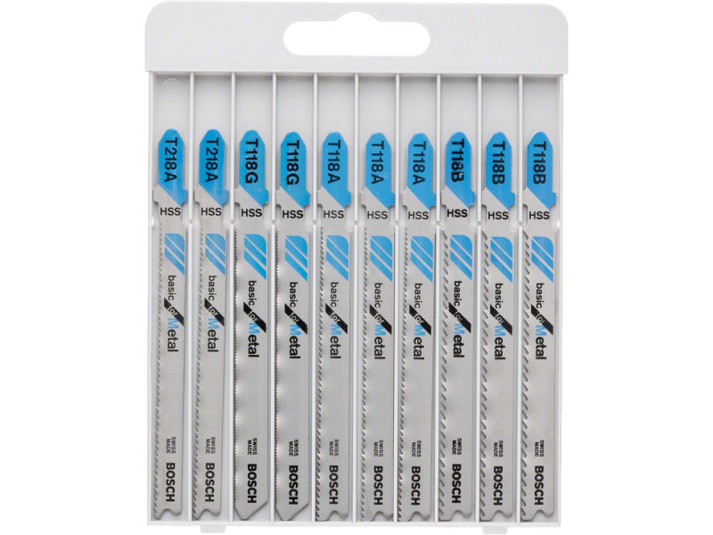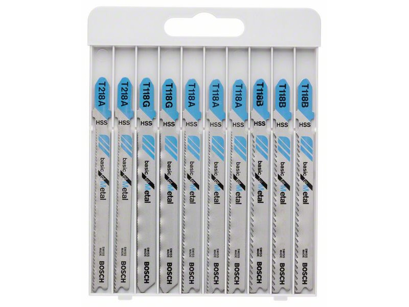 Fémek vágására - A 10 részes, fémdobozos Basic for Metal szúrófűrészlap-készlet fém vágására alkalmasFűrészlapjai ideálisak tömör fémlemezek vágásához, és fémcsövek és -profilok vágására is alkalmasakA fűrészlapok egyfuratos szárrögzítéses szúrófűrészekhez használhatókMinden T befogószárú szúrófűrészhez használható