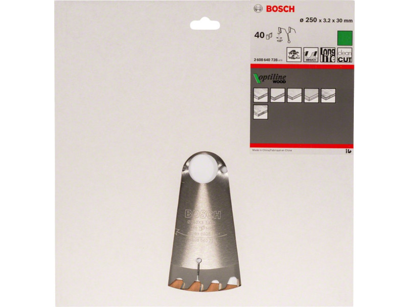 BOSCH Fűrésztárcsa fához 250 x 30 x 3,2 mm / 40T Optiline Wood ATB