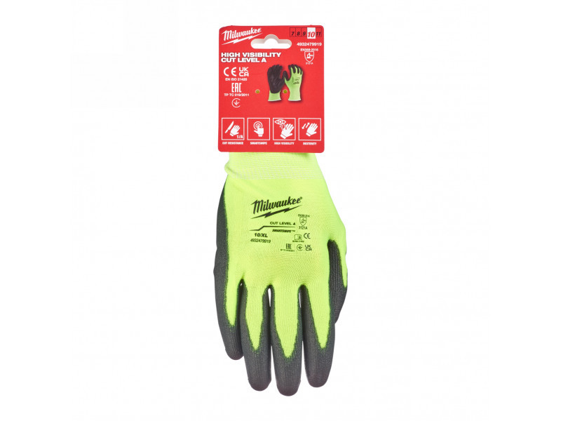 MILWAUKEE Munkavédelmi kesztyű vágásbiztos PU mártott 1/A - XL/10 Hi-Vis