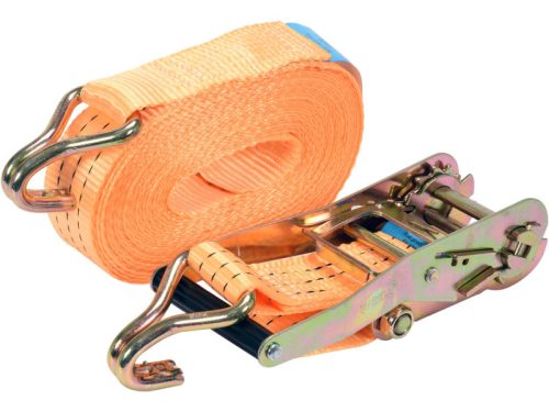 Rögzítőszalag feszítővel, csomagok biztosítására tervezve. A vastag szövés garantálja a rakomány biztonságos és stabil rögzítését szállítás közben. Ne használja felakasztásra.
