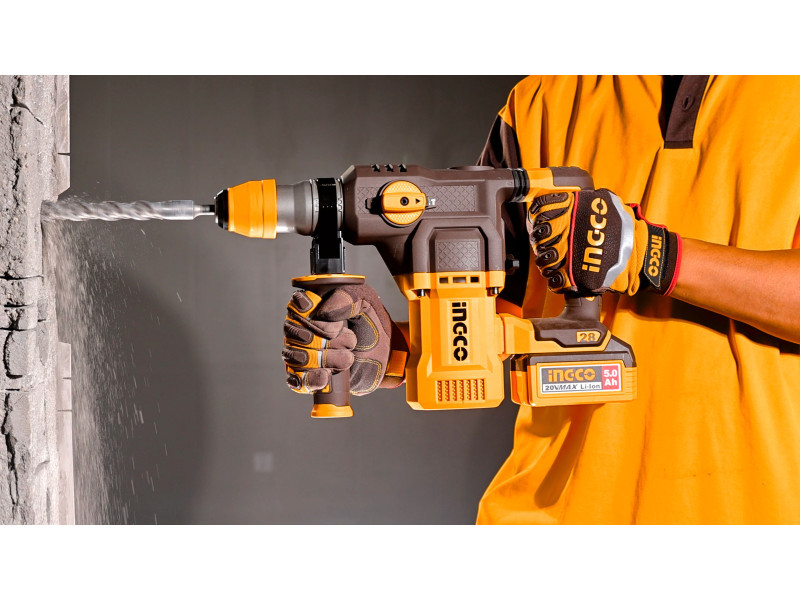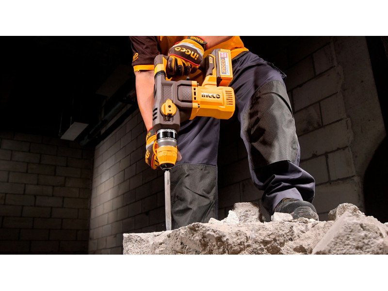 Az INGCO 20V-os akkus kombikalapács nagy teljesítményű szerszám beton, acél és fa fúrásához, valamint vésési feladatokhoz. A szénkefe nélküli motor nagy hatékonyságot, hosszabb élettartamot és stabil teljesítményt biztosít intenzív igénybevétel mellett is.
