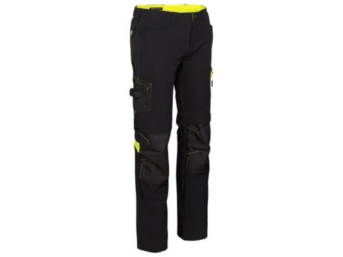 Anyagösszetétel: 90% nejlon, 10% elasztán – 250g/m2 twillTeljes főanyagában 4-irányban elasztikus alapanyag, megerősített szakadás elleni védelemmelDupla és tripla varrás – 2×-3× erősebb a kritikus pontokonLégáteresztőUltrakényelmes, ergonomikusModern fit szabás a modern megjelenésértMegemelt hátsó derékrész a lecsúszás ellenMegerősített, Cordura® hátsó nadrágszár végződés a letaposás ellenRugalmas, gumírozott derékRejtett gombos gumiszalaggal állítható derékbőségTépőzáras, megerősített Cordura® térdfolt a térdvédő elhelyezéséreFényvisszaverő és jól látható elemekGombos záródás, cipzáras sliccelMegerősített, vastag övbújtatók4 szerszámtartó zseb + 3 szerszámbújtató a jobb oldalon1 tépőzáras oldalzseb zsebfedővel + 1 cipzáras oldalzseb a bal oldalon2 megerősített Cordura® farzseb tépőzáras zsebfedővelOldalsó svédzsebek megerősített belsővelMindennapos, szabadidős vagy otthoni használatra isOEKO-TEX® tanúsított alapanyag40 °C-on mosható, max. 110 °C-on vasalhatóSzín: fekete-fluoreszcens sárga