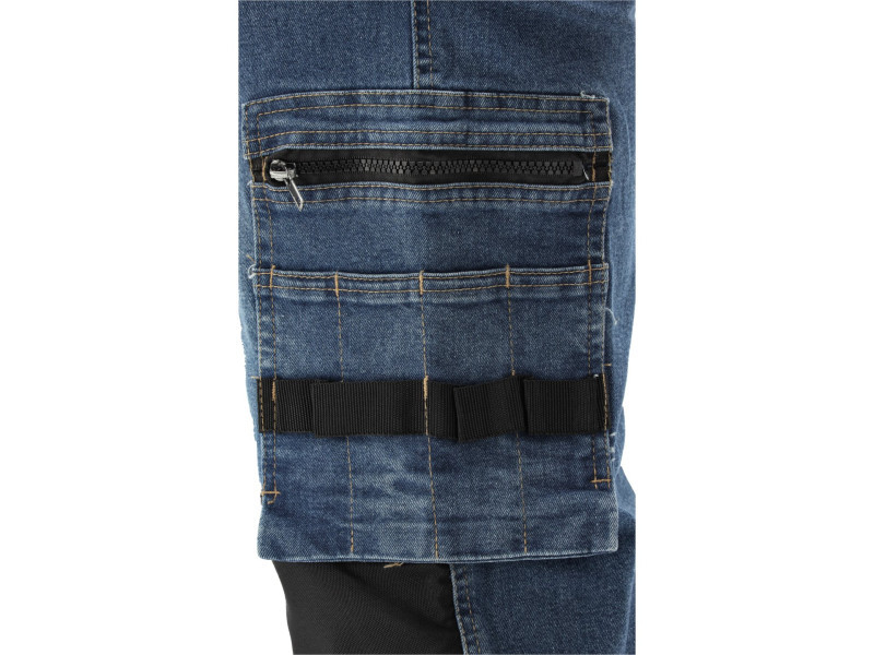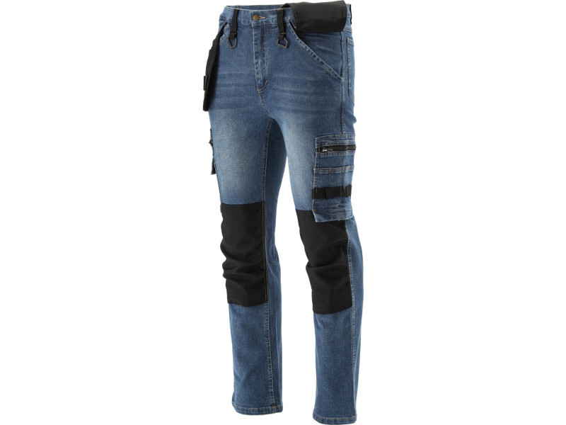 Szerelőnadrág elasztánnal, kopott és nyúlós farmer anyagból. Akár tizenhét zsebbel, köztük egy tépőzáras, két cipzáras és két levehető szerelőzsebbel. A számos alapzseb és a robosztus anyagból készült szerelőzsebek segítenek a fafaragó, a tetőfedő vagy a vízvezeték-szerelő munkájának szervezésében.