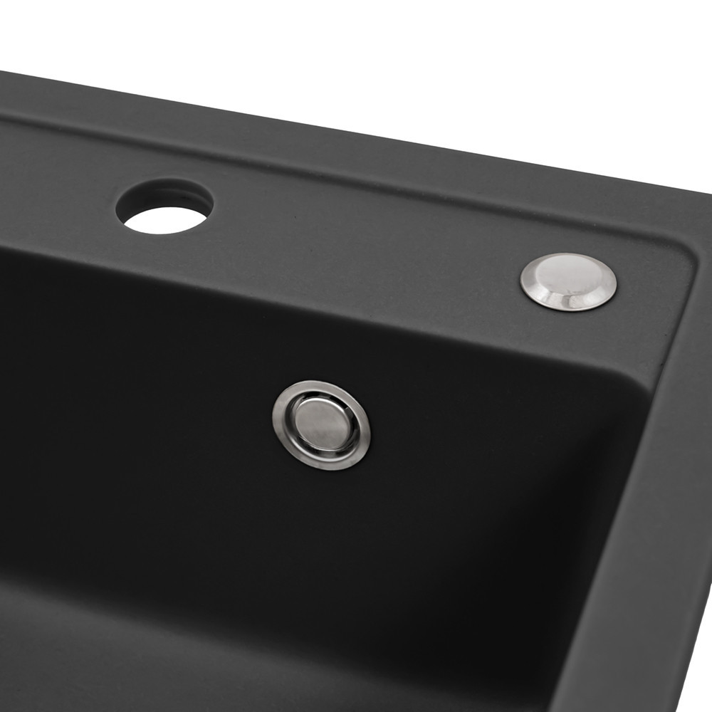 A Nia szögletes fekete gránit mosogató egyaránt kielégíti az esztétikai és a funkcionalitási igényeket. A süllyesztett beszerelési módja modern megjelenést kölcsönöz konyhájának, míg a kompakt méretei és a prémium minőségű anyagok hosszú élettartamot biztosítanak.