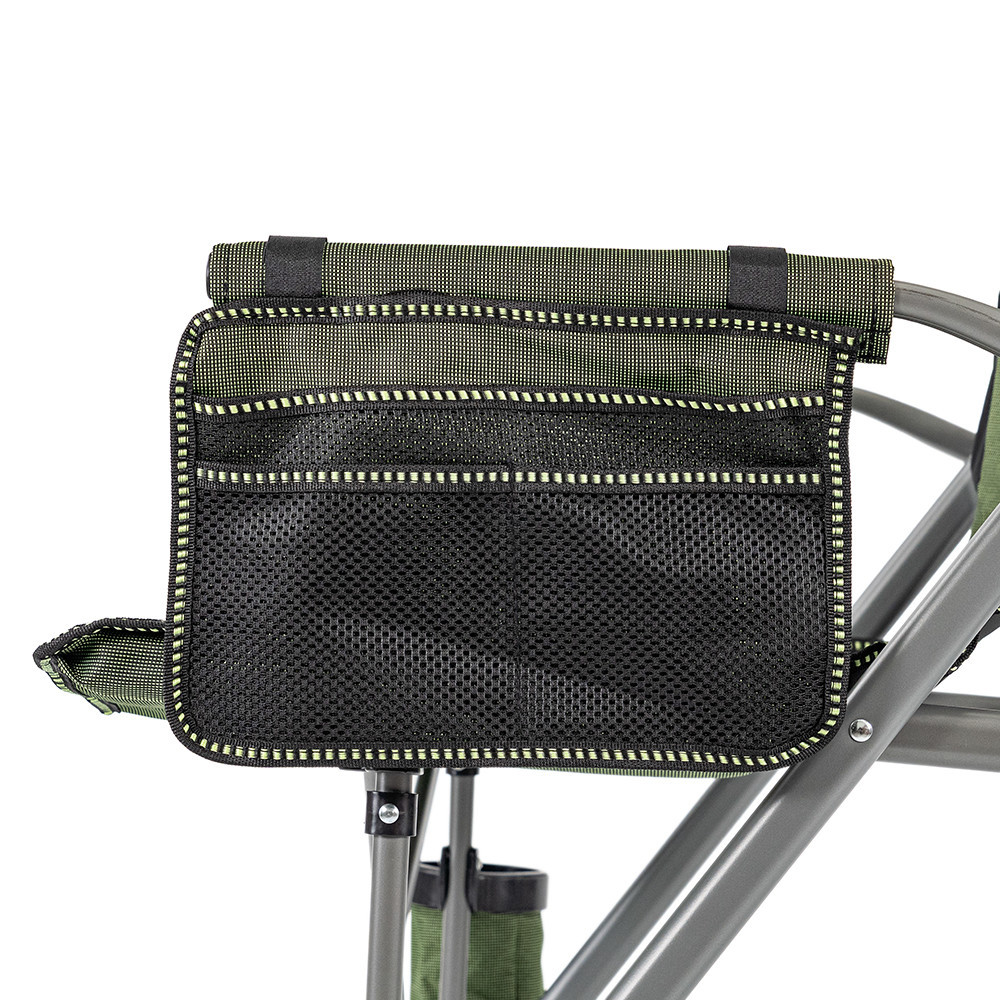 • Minden kéznél – a karfába épített pohártartóban stabilan áll az italod, az oldalzseb elnyeli a telefont, csalit, multifogót.