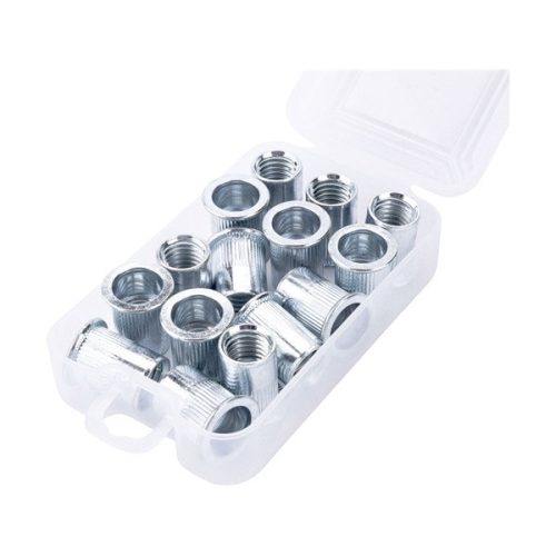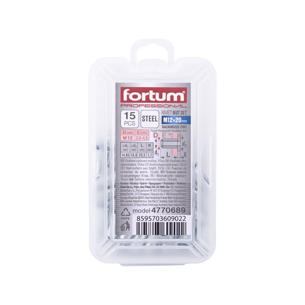 szegecsanya klt. 15 db, M12, POP-NUT, horganyzott acél, kerek, nyitott, lapos peremű, rovátkolt FORTUM